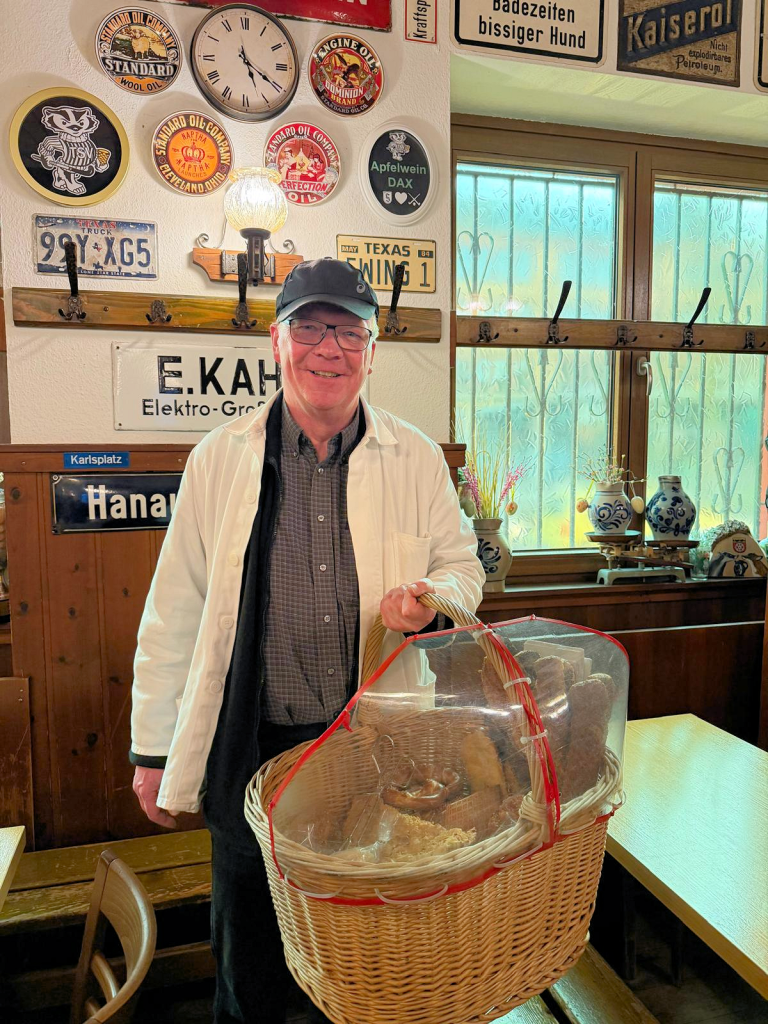 Im Frankfurter Apelweinviertel von Sachsenhausen ist Axel Beiprich dreimal die Woche als Brezelbub unterwegs.